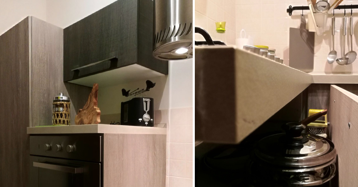 Lo spazio dedicato alla cucina, se pur ridotto, è stato reso ultra funzionale: i volumi limitati devono essere considerati come uno stimolo, una cornice in cui provare a portare creatività e adottare combinazioni intelligenti. Sfruttare la verticalità è la soluzione migliore per recuperare spazio, così come lo è utilizzare cestelli scorrevoli multi-ripiano per conservare pentole e stoviglie. Alternare ante rovere cenere e fumo contribuisce a creare un gioco di contrasti e ombre che rende estremamente attuale l'area cooking.