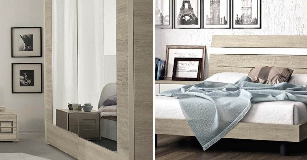 Un design leggero, delicato e senza tempo quello scelto per la camera da letto. I colori sono sono gli stessi che si ripetono in tutti gli ambienti: le sfumature naturali prendono il sopravvento sulle tinte decise e assicurano la continuità dello stesso stile in tutta la casa. La monotonia delle tinte viene spezzata dai caratteristici inserti di specchi nelle ante scorrevoli dell'armadio, dal listello incastonato nella struttura del letto e dalle maniglie. Anche in questo caso, la scelta di giocare con accessori geometrici e large size, riempie i vuoti e conferisce carattere alla zona notte.